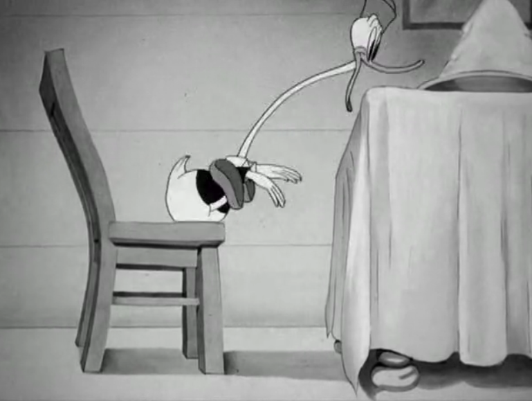 Goosey's cartoon physics are a joy to look at and harken back to the days of Bosko and company, especially when he uses his tail to pull himself onto a chair, head (and neck) springing out after the impact and wobbling around like a spring.