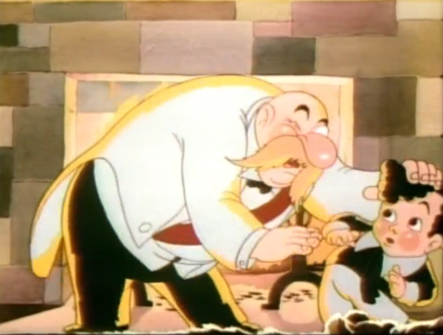 Poor timing and spacing in the animation (as well as a general lack of clarity) muddle the gag and its success, but right before Twombly gets a pounding, there is a very subtle and mechanical take of his monocle flying off his face in surprise.
