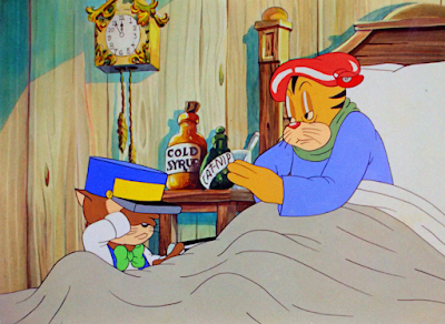 In any case, Jones doesn't make this a cartoon about a cat struggling to get a jar off of his foot for seven minutes. With a firm stomp, Tommy breaks the jar loose from his shoe and continues onward with his nightly duties.