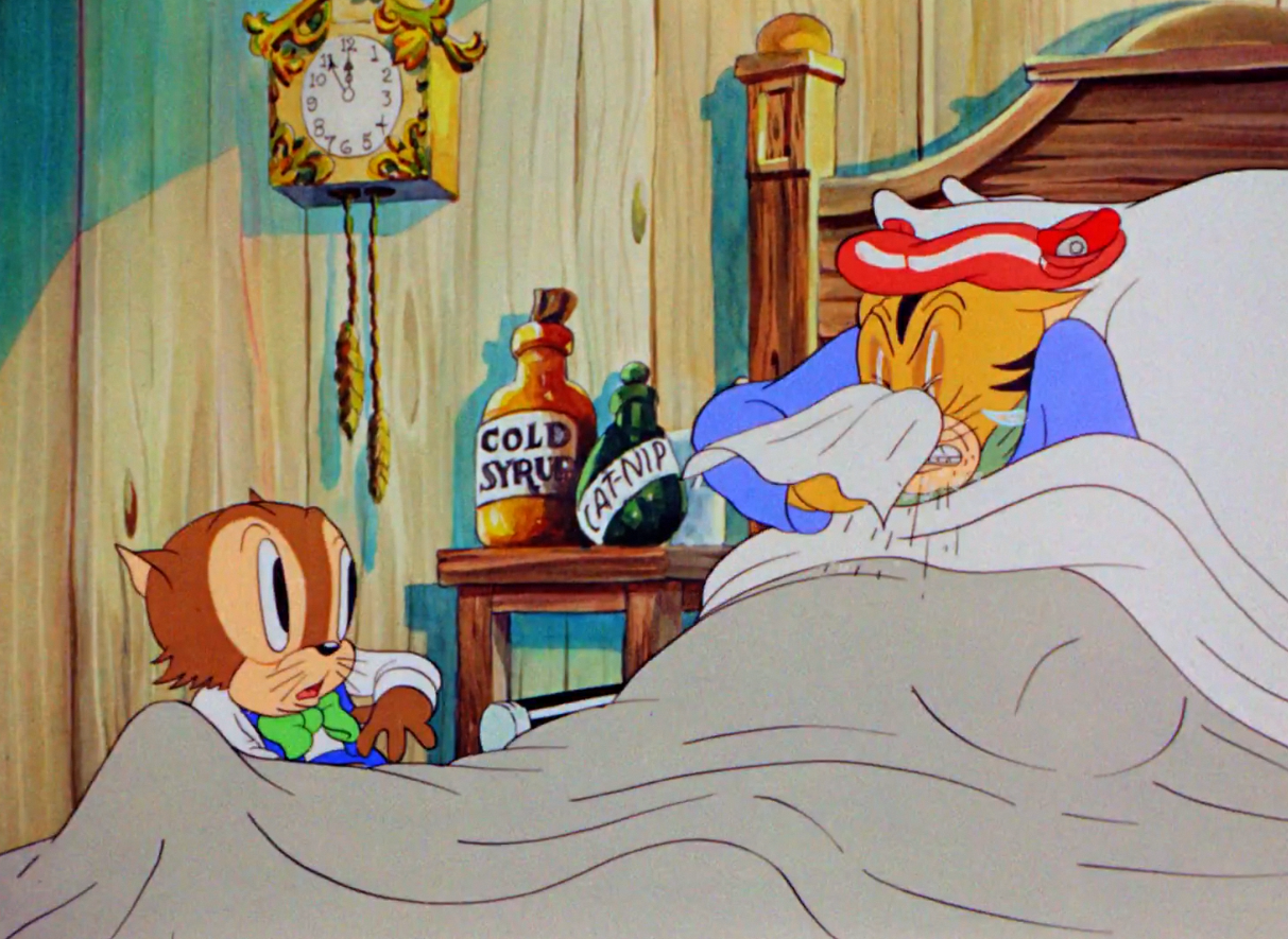 A.C. Gamer's animation of Tommy reaching his breaking point, screaming in a distinctive adult Mel Blanc yell, is nicely exaggerated for the time, his fur standing straight on end. Even better is the face he makes when he slaps his hand over his face, skin folds plentiful as they bulge out between his fingers.