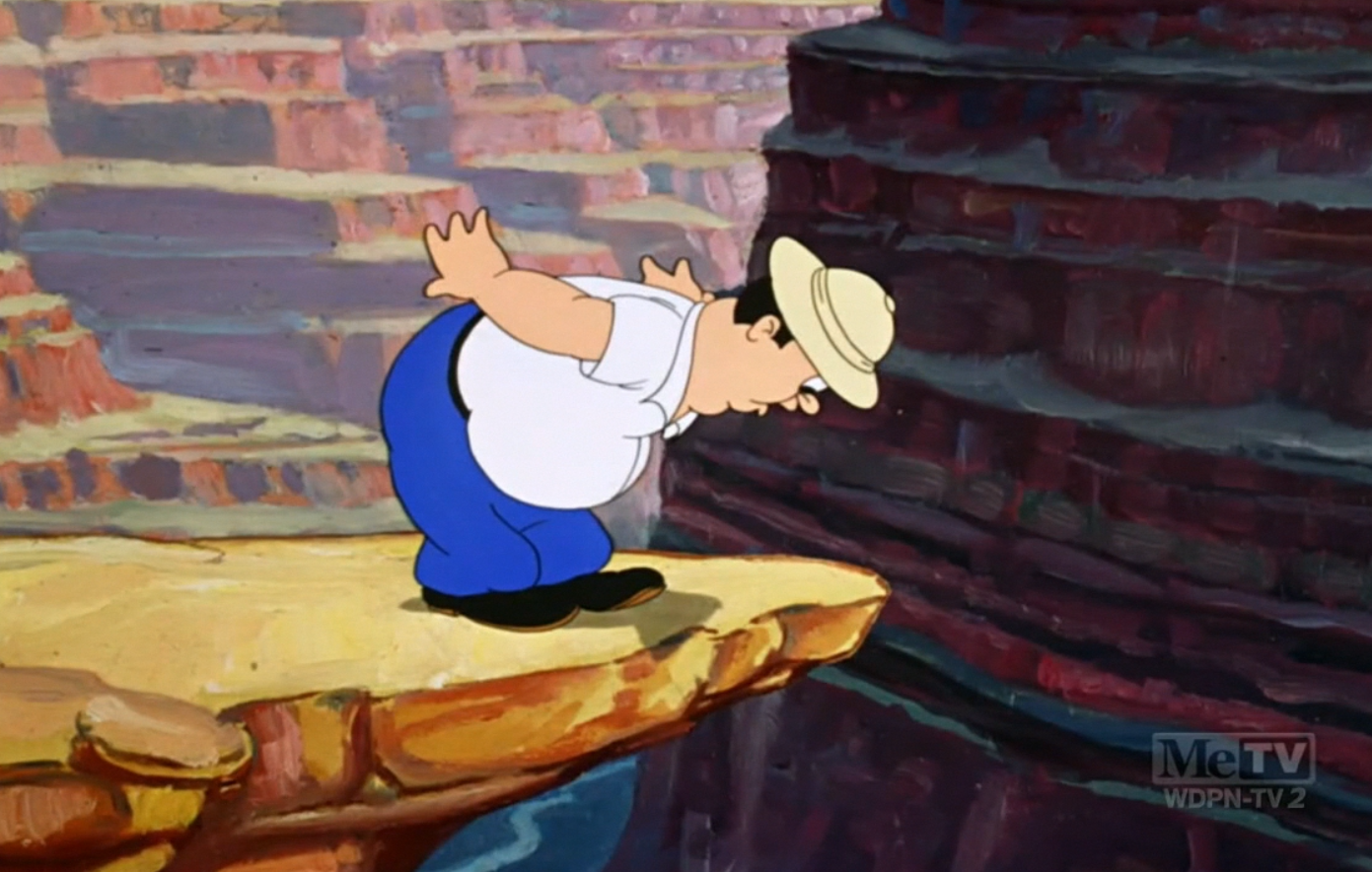 Avery’s acquisition of Johnny Johnsen as a background painter has truly elevated the quality and interest of these films. Genuinely breathtaking background paintings mold well with the bombastic narration, striking the intended effect much more successfully than had such grandiose writing and audio been spliced overtop the vague, melting brush strokes of Art Loomer. Johnsen’s work adds a cohesiveness and authenticity, truly bringing the format of the film closer to the source of which it is lampooning.