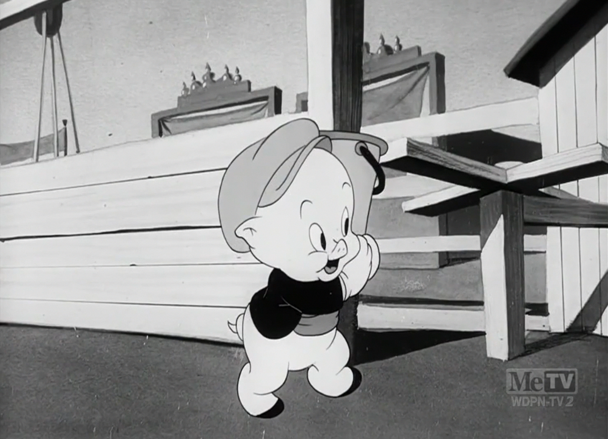 An over abundance of detail can be just as charitable, too. Porky’s race horse is much more akin to a real live horse than anything touted by the eponymous prize pony. Such a disconnect in designs allows Porky’s horse to feel stronger, more stolid, more “professional”—it justifies his racing success, just as it enunciates the dopiness of the other horse and establishes the standards set by the fair and its steeplechase. In short, he isn’t up to snuff.