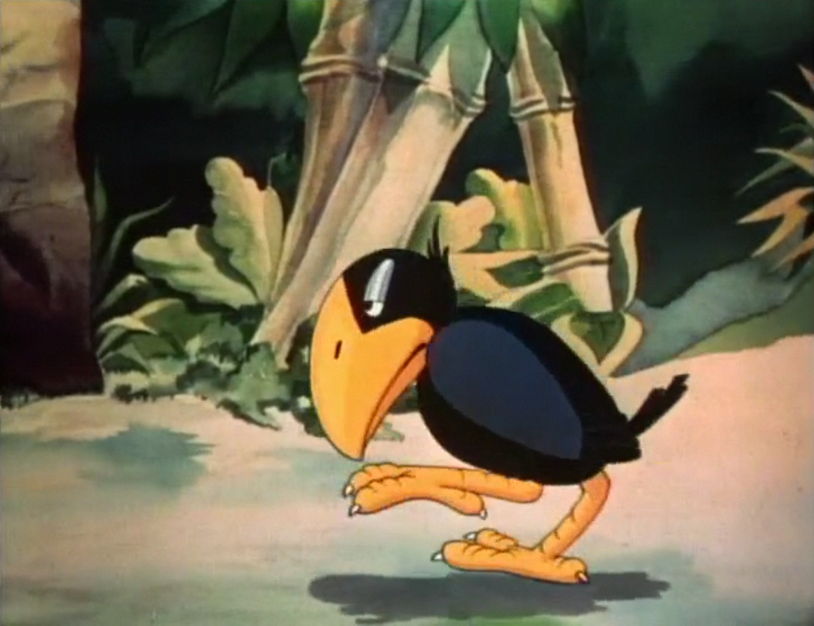 Who else should enter but the ever enigmatic mynah bird. His role is the exact same as his role in Lion Hunter: enigmatically appear on screen, hopping to Stalling’s plodding accompaniment of “Fingal’s Cave” with surprising apathy, and occasionally demonstrating incomprehensible feats of strength that never are—nor should be—explained. So much so that even Jones didn’t understand him (nor the cartoons), citing them as “fourth dimensional pictures.” More about the inception of the Inki series can be read in the analysis of The Little Lion Hunter for anyone who missed it or may desire a refresher.