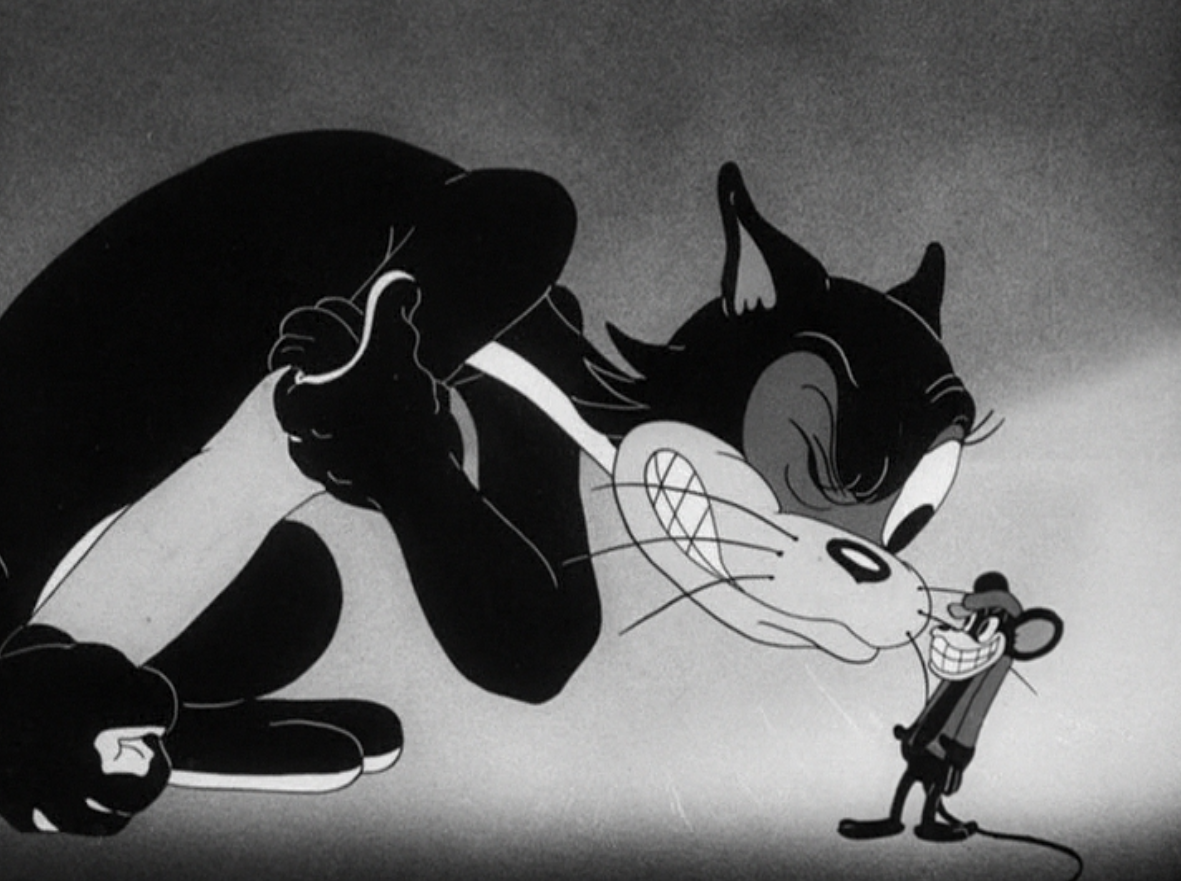 Clampett, ever the pop culture buff, was possibly among them. Or, at the very least, held enough interest in the program to deem it worthy of parody. Here, the short follows the account of Kansas City Kitty—a scrappy Irish feline who details her run in with a gang of mobster mice that held her baby kitten at ransom.