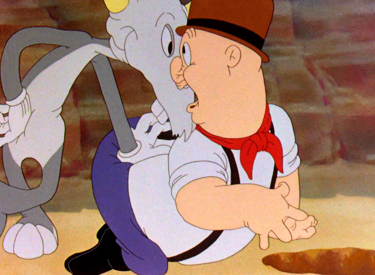 There are certainly some moments that do feel extraneous in their cruelty. Bugs slamming the pot over Elmer's head and banging it, just after screaming at him moments before is the first to come to mind. It's an unnecessary tangent that doesn't necessarily add much to the short, other than sympathy for poor Elmer, whose only eternal crime is being a complete and utter rube. That is the second part of the equation as well; Elmer has done nothing to warrant such abuse, and is even surprisingly tolerant of it. His first real threat against Bugs comes pretty late within the short's runtime. An overzealous trickster and overzealous buffoon makes for an unequal balance that can be difficult to work with.